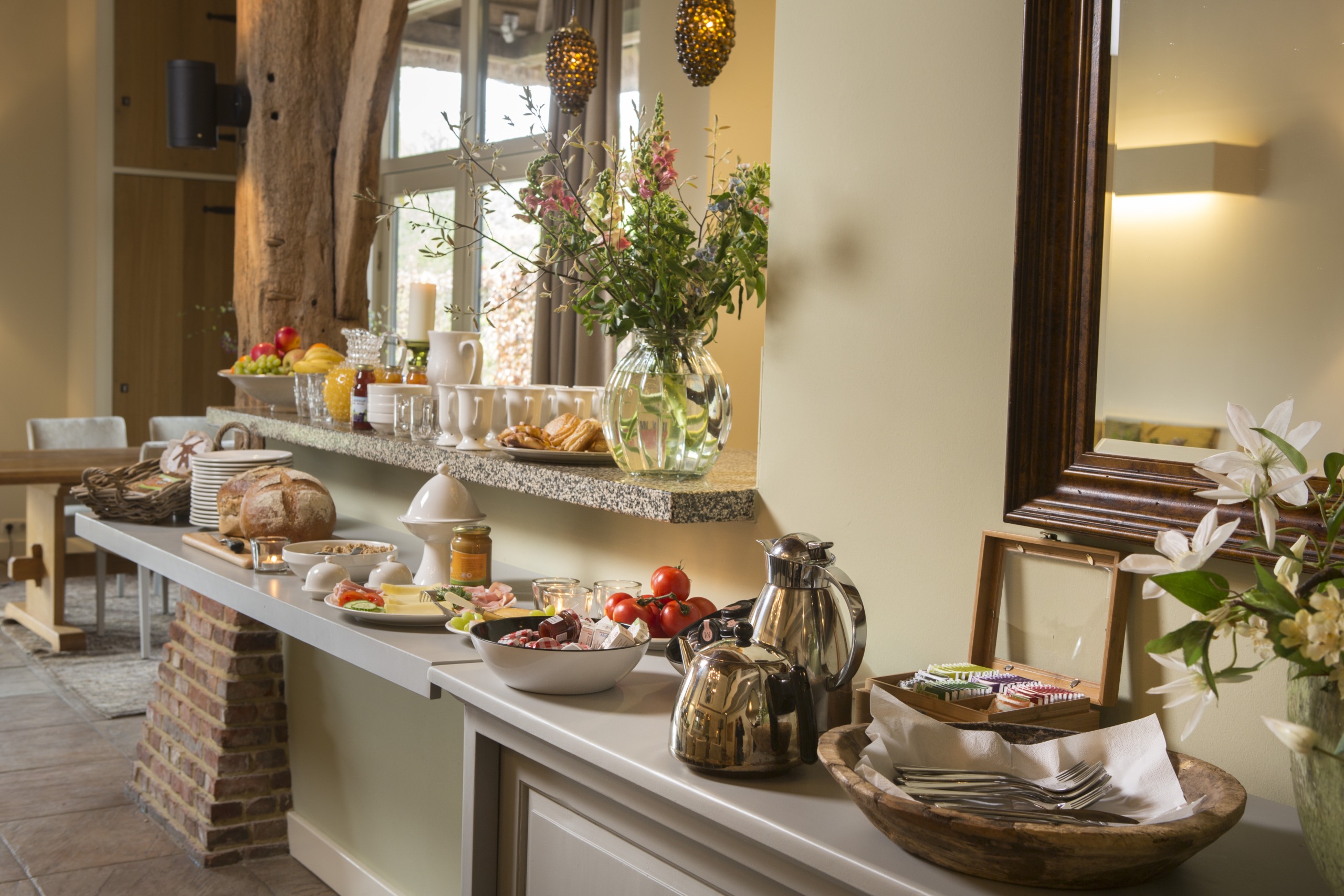 Organiseer je een meerdaagse bijeenkomst of komen er gasten van ver? In ‘De Vlaamse Schuur’ zijn sfeervolle slaapkamers aanwezig voor maximaal 16 personen, verdeeld over 8 kamers. Dit is uit te breiden met een extra slaapgelegenheid voor 2 personen in het naastgelegen Bakhuisje. Meer plek nodig? Landgoed de Hoevens kan de directe omgeving extra overnachtingsmogelijkheden regelen.