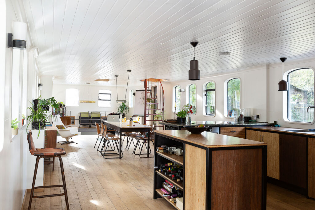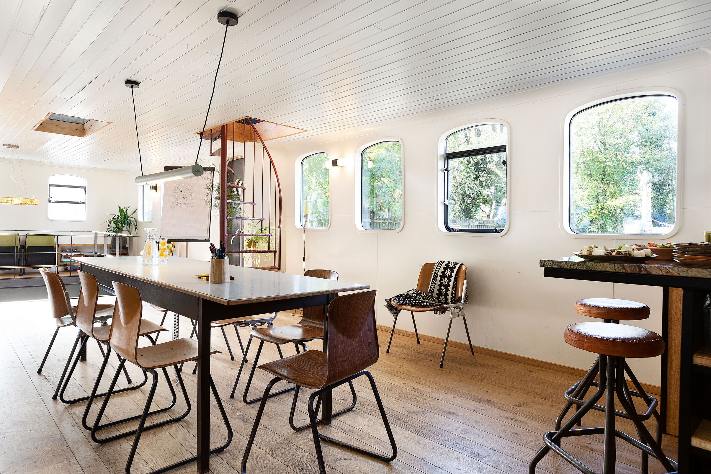 Vergaderlocatie De Barones in Amsterdam Noord heeft álles wat je van een kleinschalige vergaderlocatie op het water mag wensen: makkelijk bereikbaar (vlakbij Amsterdam Centraal), ruim en verrassend mooi gelegen (aan het IJ) met veel groen en water om je heen.