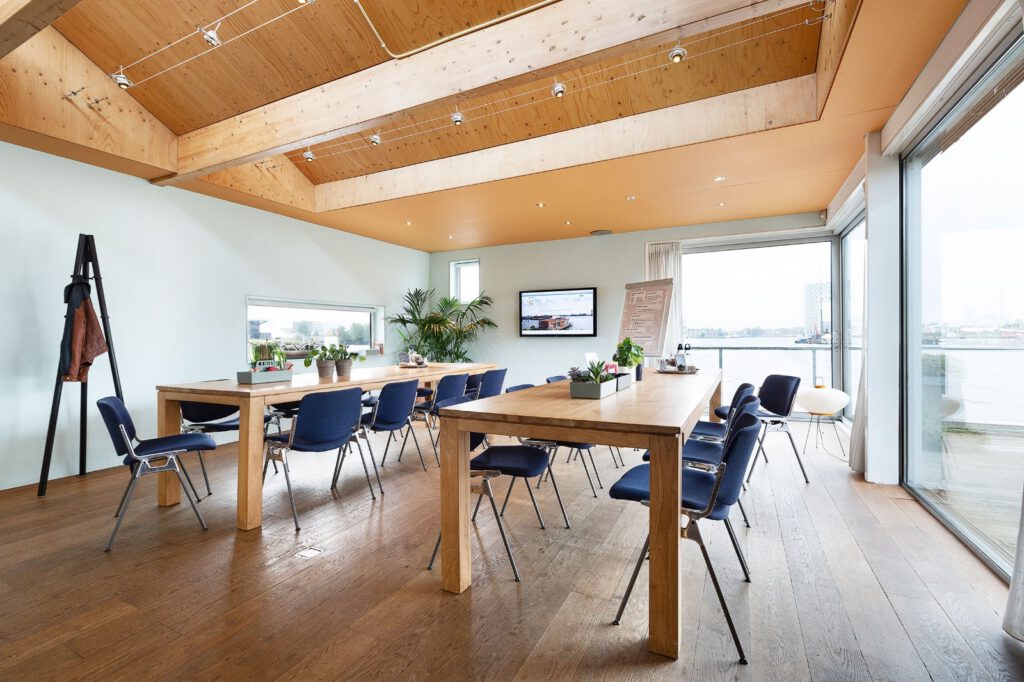 Terwijl je al drijvend vergadert, kun je genieten van het uitzicht over de skyline van Amsterdam. De geWoonboot is zeer goed bereikbaar met het OV en de auto en je bevindt je letterlijk op een steenworp afstand van het centrum van Amsterdam, aan de andere kant van het IJ. Een ware belevenis dus, perfect voor team meetings, brainstormsessies en meer. Met gemakkelijke bereikbaarheid, parkeren voor de deur en heerlijk eten en drinken. In een adembenemende omgeving biedt deze vergaderlocatie de ideale setting voor jouw bijeenkomst, training, workshop of heidag.