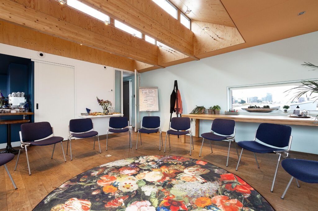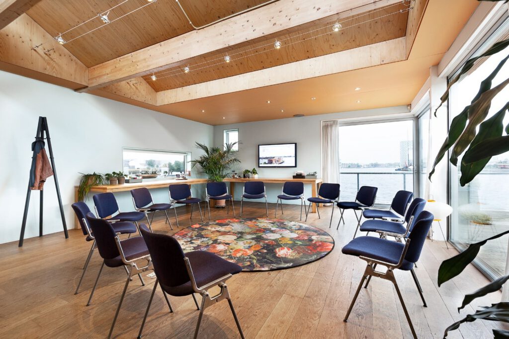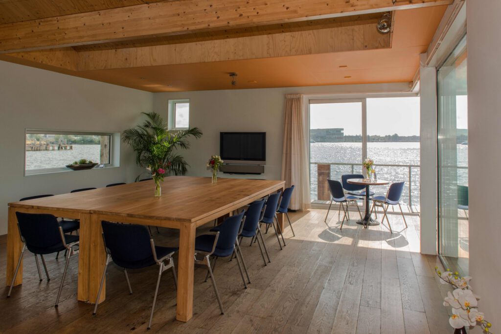 Op de duurzame vergaderlocatie geWoonboot laten we onze gasten beleven hoe het is om buitengeWoon te vergaderen op het water. De unieke ligging nabij de NDSM-werf (dé culturele en creatieve hotspot in Amsterdam Noord!) is magisch en inspirerend. De boot geeft letterlijk een gevoel van ruimte en rust. Vergaderen met positieve impact!