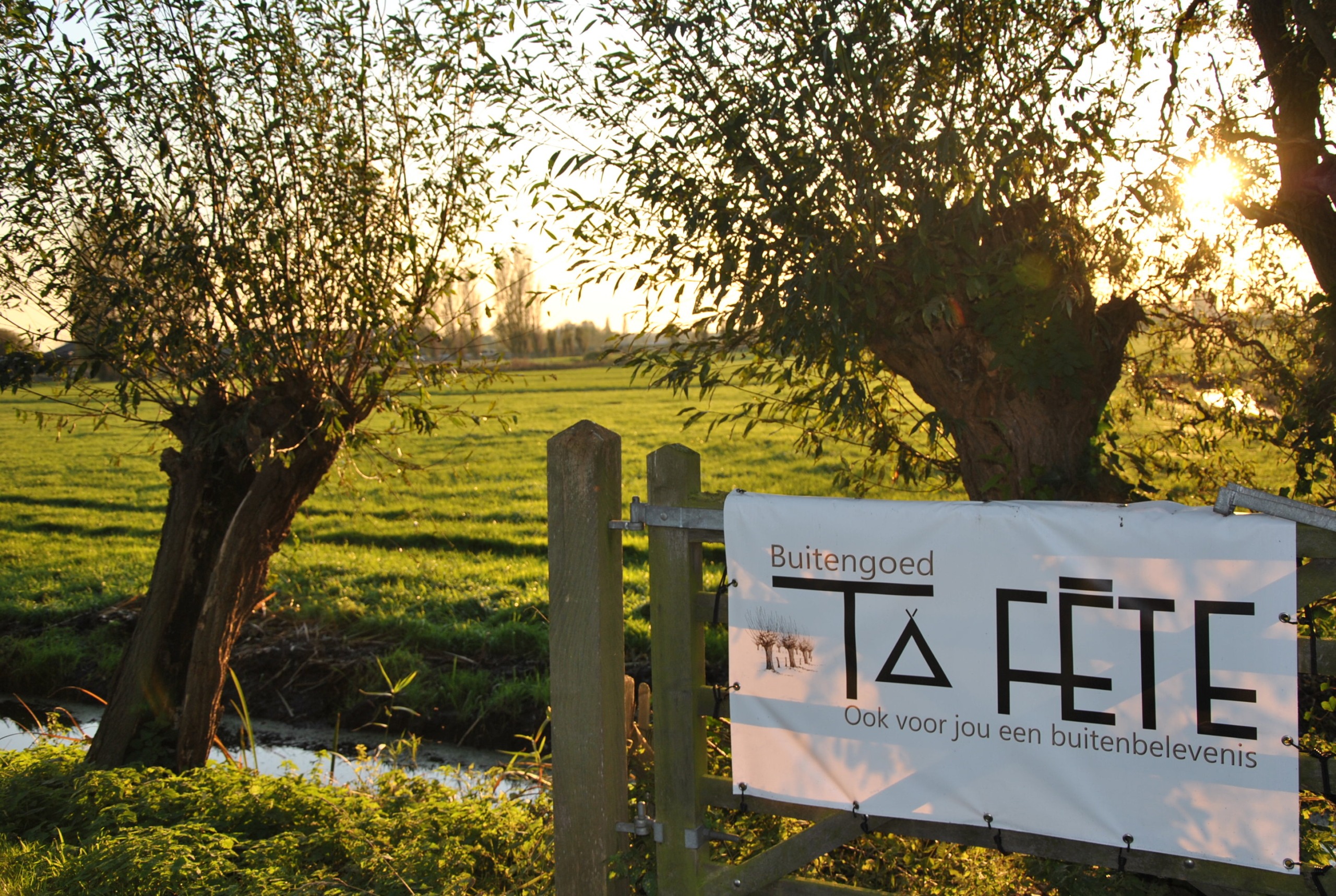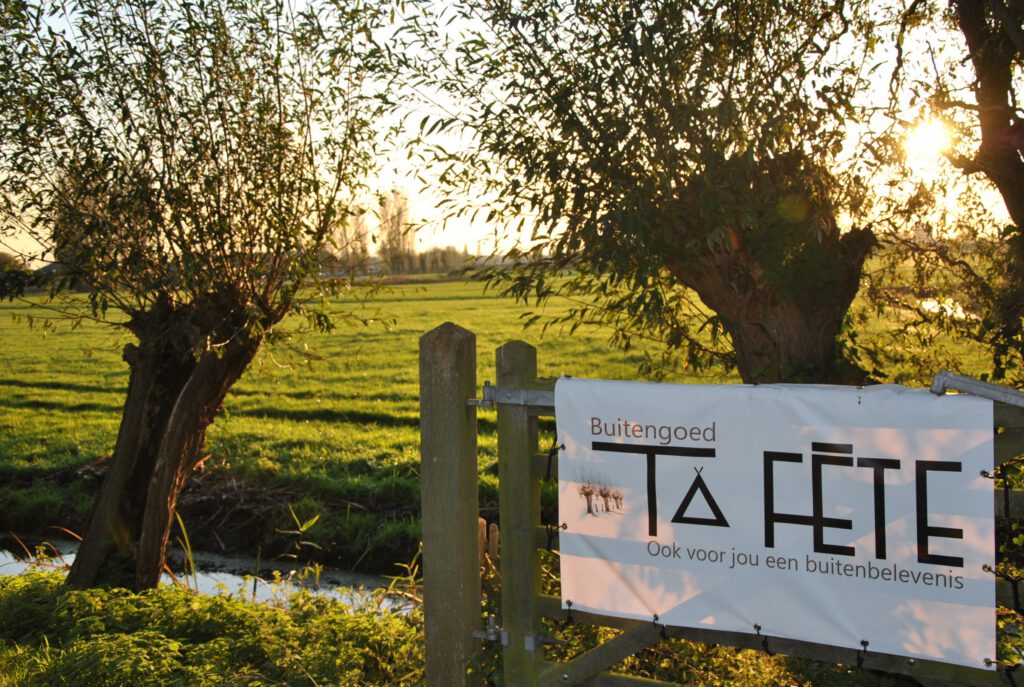 De oude boerderij van Buitengoed Ta Fête ligt op een heerlijke plek midden in de polders. Hier kan je in alle rust met jouw team aan de slag, want deze vergaderlocatie is altijd exclusief voor jullie groep. In de verte zie je de sky-line van de omliggende steden: Den Haag, Rotterdam, Delft. En bij mooi weer is er een heerlijk terras met zicht op de weilanden met koeien, paarden, schapen en in het seizoen een boer die het hooi binnenhaalt. Aan het eind van de dag zie je de zon achter de horizon verdwijnen met een prachtige oranje gloed en de kwakende kikkers op de achtergrond. Op het terrein scharrelen kippetjes, 2 katten en een hond en is ook een kleinschalig natuurkampeerterrein.