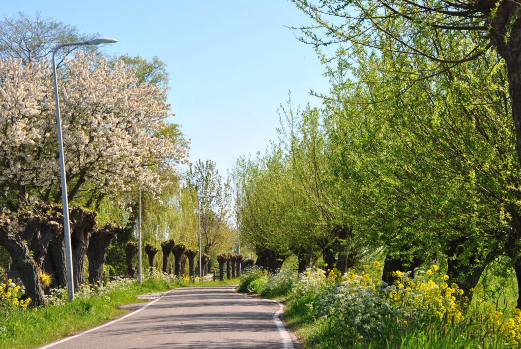 Kom je met het OV? Dan is het heerlijk om op station Schiedam of Delft een OV fiets te pakken en 30 minuutjes te fietsen door het groene landschap.