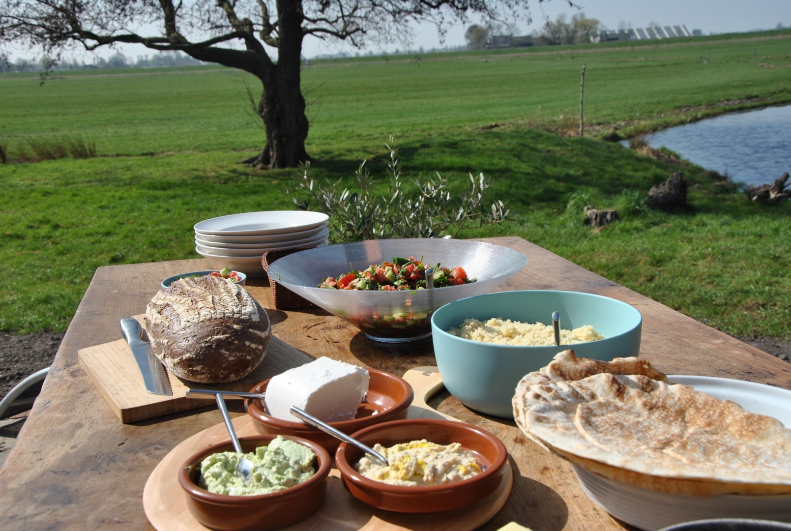 De catering tijdens jullie teamdag verzorgen wij helemaal zelf. Wij zorgen voor versgebakken taart en een heerlijke lunch met zoveel mogelijk gerechten uit onze eigen moestuin. Er is vers sap van het fruit uit onze boomgaard en melk van het streekwinkeltje van de boer. Indien gewenst kan er ook pizza worden gebakken in de houtgestookte pizza oven (ook als workshop). Al dit lekkers kan bij mooi weer op het aansluitende terras opgegeten worden.