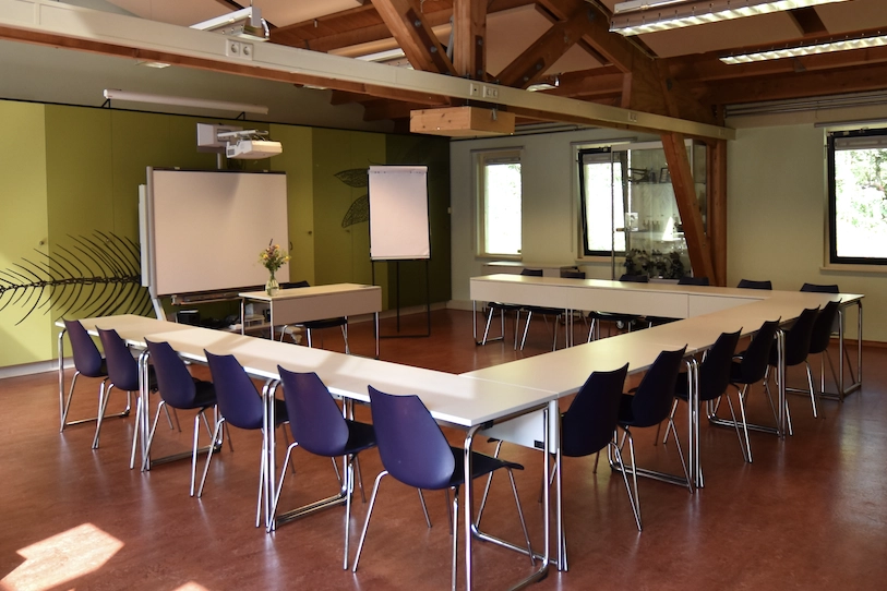 De Tuinkamer is een sfeervolle kleinere ruimte voor maximaal 10 personen. In deze ruimte is een flatscreen aanwezig. Daarbij heeft de Tuinkamer openslaande deuren naar het terras. In beide zalen zijn de faciliteiten als scherm, flipovers, microfoon inbegrepen.