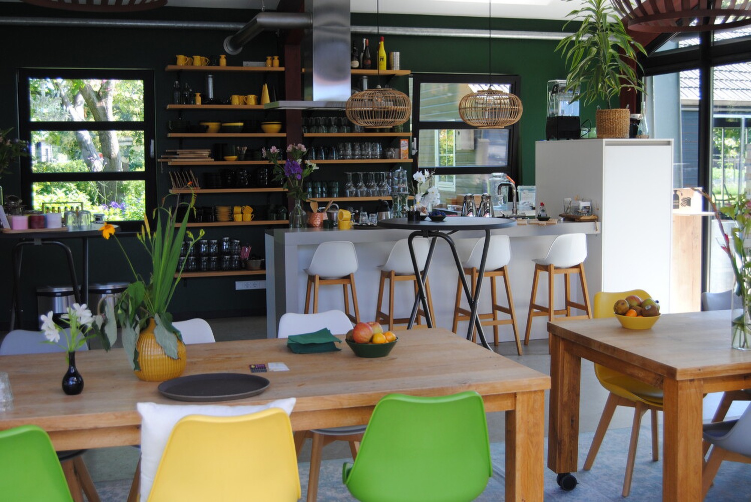 In 2005 hebben wij onze groepsaccommodatie de Lummel geopend. Omdat wij steeds meer bedrijven en instellingen over de vloer kregen voor vergaderingen en inspiratiesessies hebben we besloten om er een sfeervol onderkomen bij te bouwen. Dit heeft uiteindelijk in 2017 geresulteerd in vergaderlocatie Het Glaslokaal. Het gebouw bestaat uit 2 verdiepingen. Je kunt zowel beneden als op de begane grond gemakkelijk en ruim met 12 personen zitten.