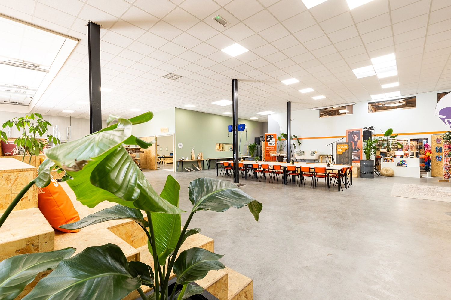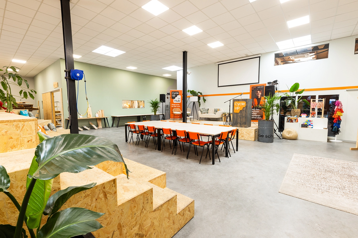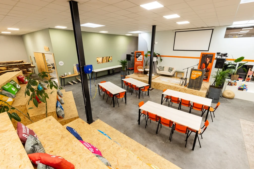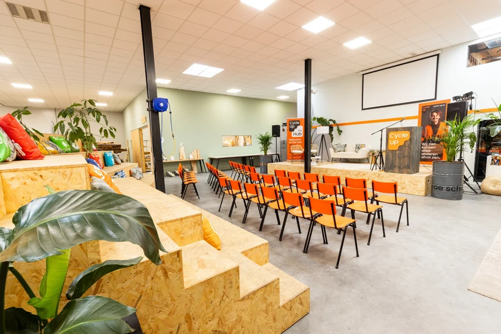 De duurzame event- en vergaderlocatie, Cycle-Up HUB, is de eerste circulaire HUB van Noord-Nederland. Met ruim zeven ondernemingen in een pand, zetten wij dagelijks een stapje richting een duurzame toekomst. We geven niet alleen het goede voorbeeld, maar willen ook jou betrekken bij onze circulaire missie! Of je nu op zoek bent naar een groter feest of inspirerende vergaderruimte: de Cycle-Up HUB biedt je de mogelijkheden om van jouw evenement een groot succes te maken!