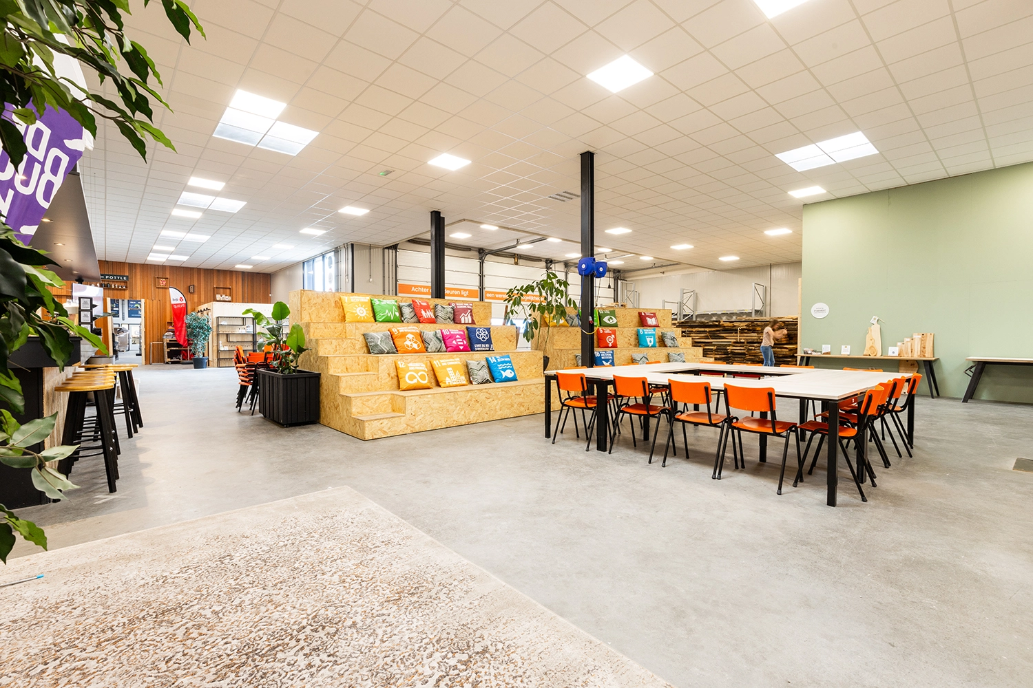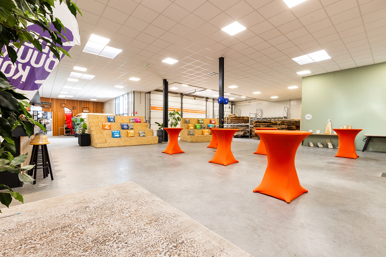 Op zoek naar een inspirerende omgeving om echt de diepte in te gaan? Onze vergaderzaal biedt ruimte tot 25 personen. Met een HD TV-scherm, verschillende mogelijke opstellingen en koffie, thee en tafelwater is dit de zaal voor jou en je team! Toch op zoek naar wat groters? Bekijk dan ons circulaire plein, waar je omringd door ondernemers jouw grootschalige of kleinschalige evenement kan hosten. Met ruimte tot 200 personen en talloze mogelijkheden, bieden onze beide zalen je de ruimte om creatief aan de slag te gaan!