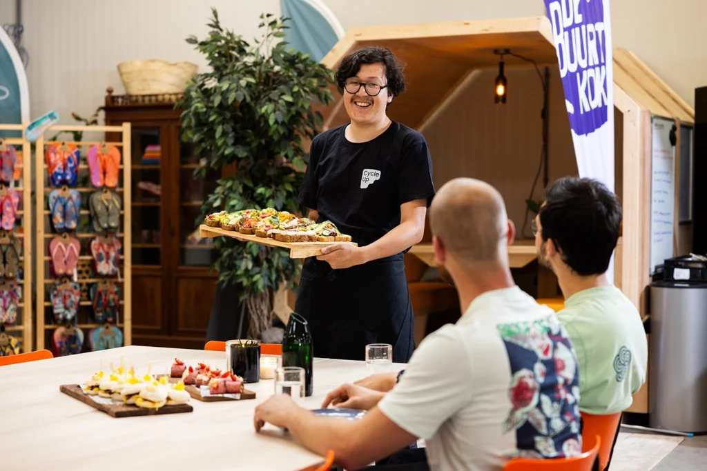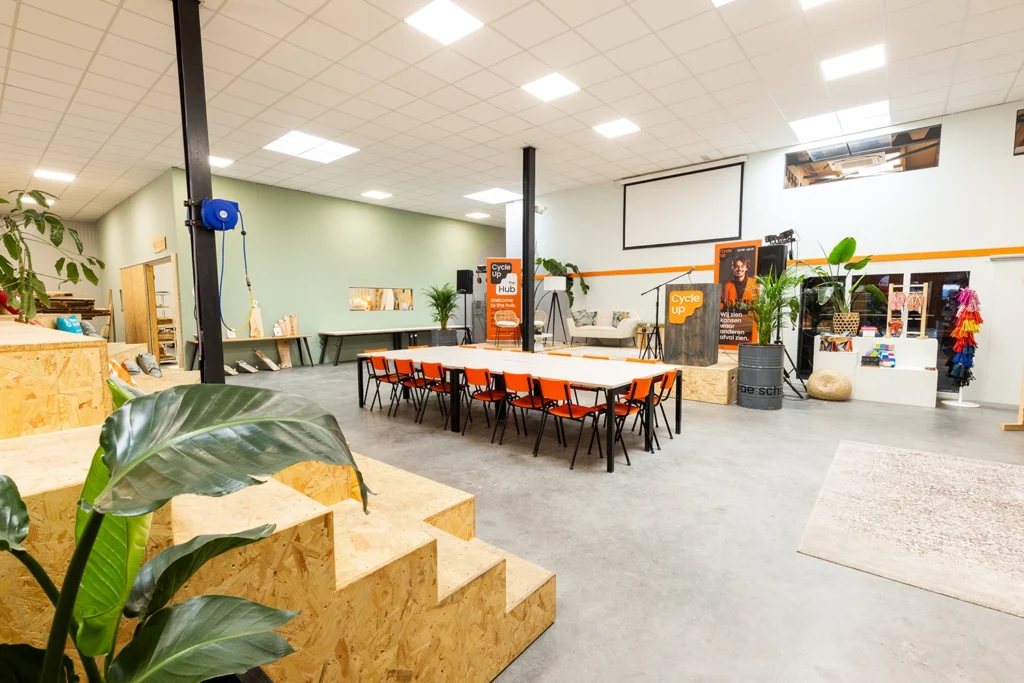 Voor jou goed om te weten: met jouw boeking binnen de Cycle-Up HUB draag je direct bij aan sociale impact. Onze HUB wordt namelijk gerund door onze Social Workforce: een groep mensen met een uitdaging. Samen met hen zorgen we ervoor dat jouw ruimte klaar staat en je evenement goed is geregeld. Daarnaast ben je omringd door duurzame impact: de HUB staat nooit stil en om die reden is een evenement bij ons niet alleen uniek, maar ook een echte ervaring!