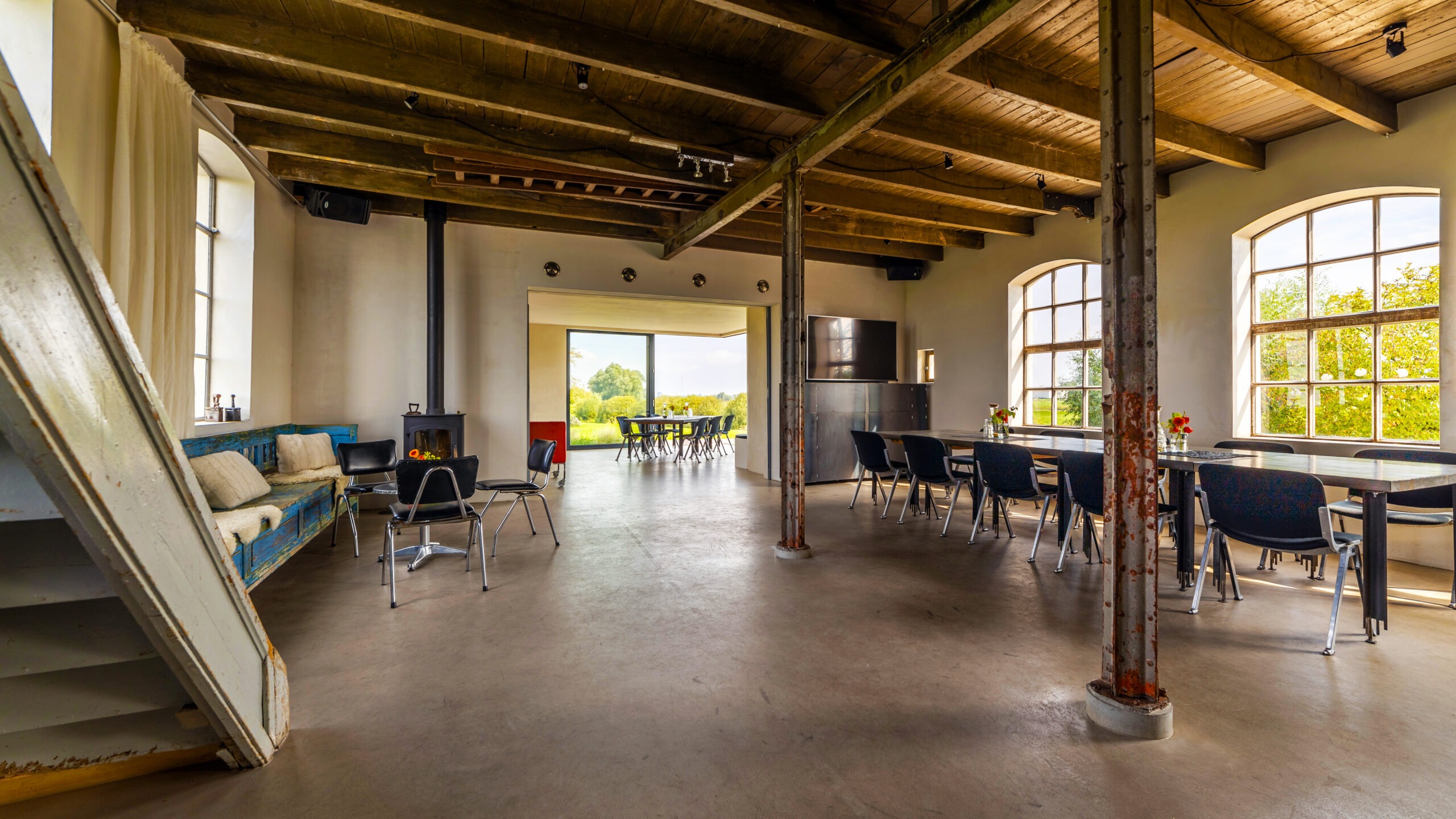 Biedt plaats tot 70 personen, is voorzien van leuke, geborgen zitjes en middels stoere schuifdeuren in twee ruimtes op te splitsen. Perfect als je in groepjes wilt werken.