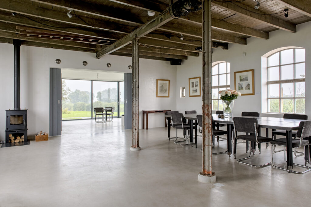 Want niet alleen het de omgeving is fenomenaal. Ook binnen ontbreekt het je aan werkelijk niets: de ruimtes zijn heerlijk licht dankzij de grote raampartijen, met weids uitzicht over het rivierenlandschap. En puur, industrieel en buitengewoon comfortabel ingericht met leuke details en gezellige zitjes, vloerverwarming en zelfs een houtkachel voor de koudere dagen.