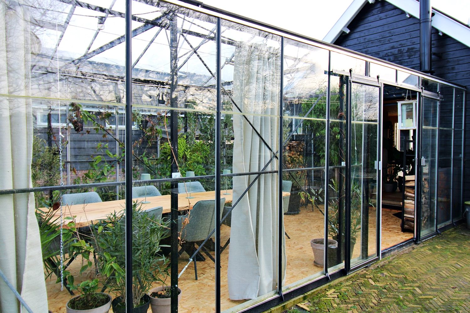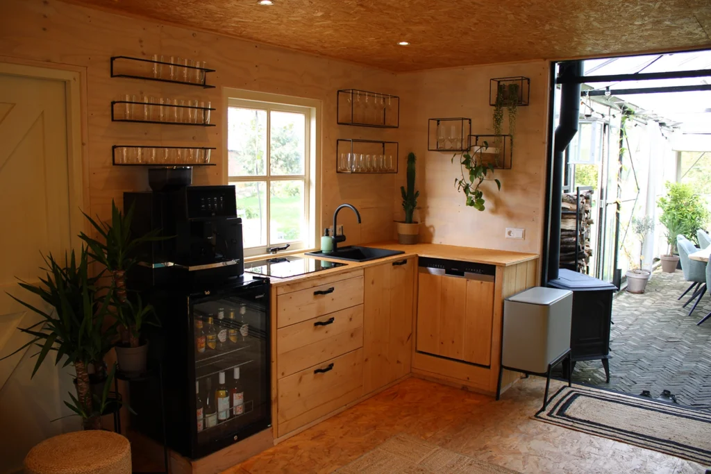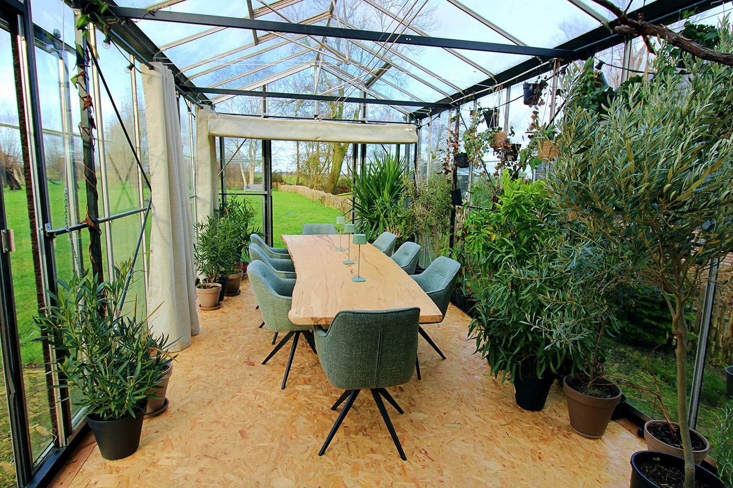 In de tuinkas van vergaderlocatie Aan de Lek staat een lange tafel tot 8 personen. De locatie is van alle gemakken voorzien, waaronder uiteraard WiFi en presentatieschermen. Het heeft een afgezonderde break-out plek aan een hoge tafel en een knusse zithoek, eigen keuken en sanitair. Op koude dagen brandt er een knisperend haardvuurtje.
