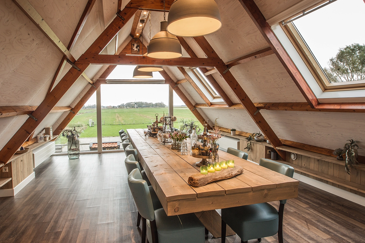 Vergader boven met panoramisch uitzicht over de weilanden. Ga naar buiten en zet letterlijk je voeten in het gras. Bij ons stap je uit je routine, de warme sfeer zorgt voor luchtiger samenwerken en frisse ideeën.