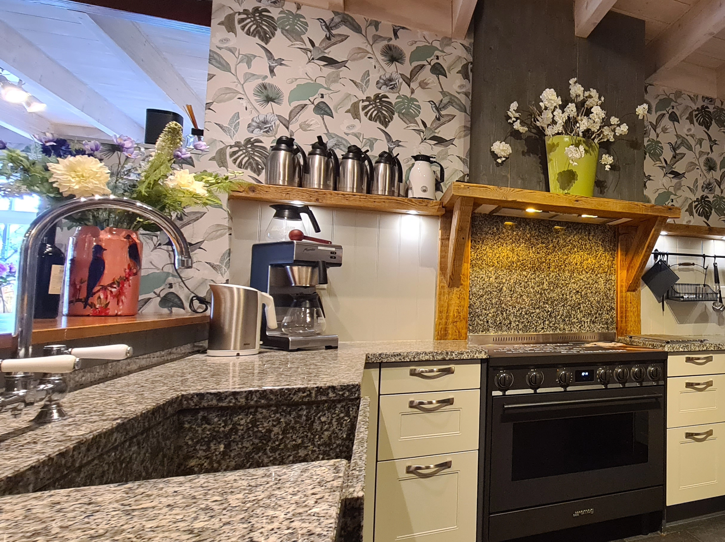 Samen koken in de goed uitgeruste Opkamer met keuken, of je volledig laten ontzorgen met lokale catering: het kan allebei.