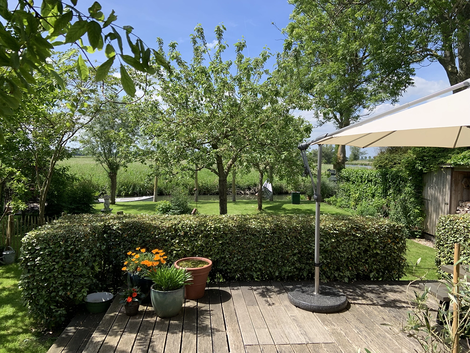 Gelegen achter onze onder architectuur gebouwde dijkwoning, biedt onze schuur 45m2 ruimte, rust en relaxed genieten voor max. 6 personen. En een heerlijke tuin met verschillende terrassen, zitjes (aan het water) en vrij uitzicht op ‘n vogel broedgebied.