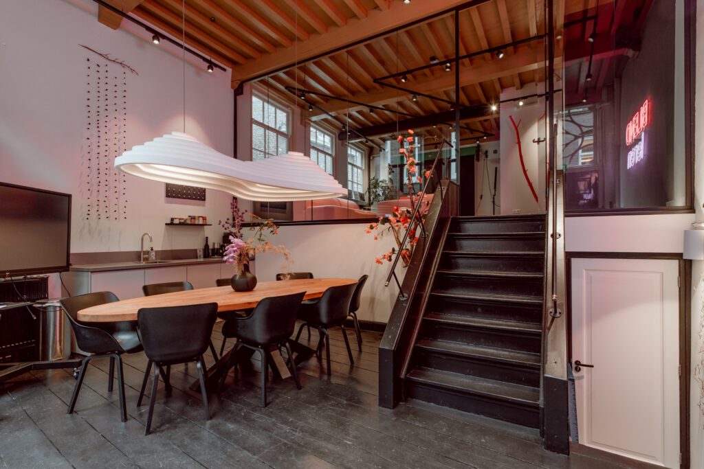 In een monumentaal pand uit 1670 bieden wij een sfeervolle vergaderruimte aan. Een unieke mix van een historisch pand, met moderne inrichting. Het pand is volledig gerestaureerd door het Utrechts Monumentenfonds.