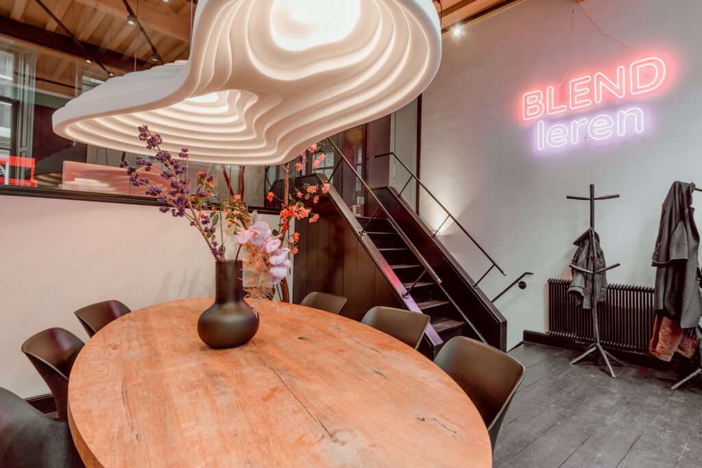 In ons monumentaal pand uit 1670 bieden wij een sfeervolle vergaderruimte aan. Het pand heeft al diverse bestemmingen gehad: van woonhuis, school, filmtheater tot kantoor. Onze werkplekken (onderwijskundig bureau BLEND leren) bevinden zich op de eerste verdieping. De begane grond is in zijn geheel te huren voor vergaderingen, brainstorms of trainingen. Het historisch pand, met moderne inrichting draagt bij aan een inspirerende omgeving waar mooie gesprekken, creatieve ideeën en nieuwe energie de ruimte krijgt tijdens jullie bijeenkomst. Gastvrouw Int denkt graag met jullie mee.