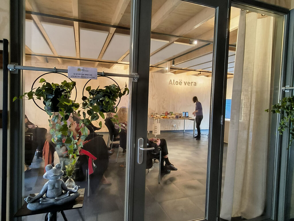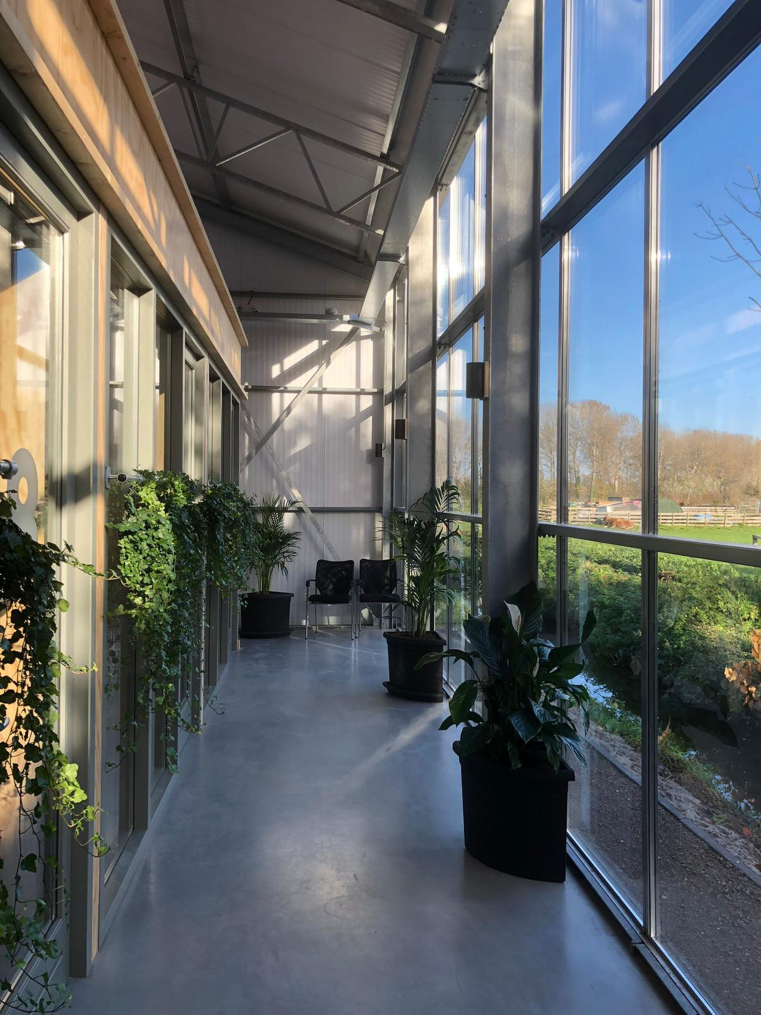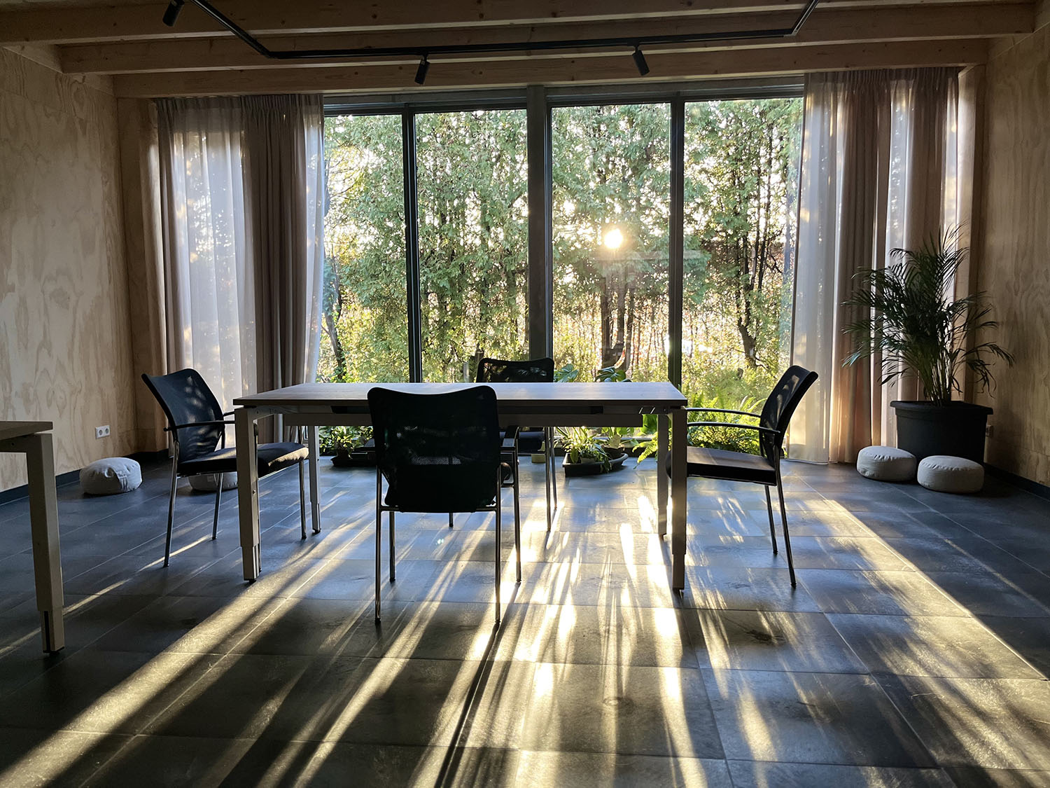 De beleving begint al bij de entree van onze vergaderlocatie. Je voelt je als in een aangename, inspirerende, hippe kweekkas, waar ideeën ontspruiten, plannen ontwikkelen en groeien als kool. Acties komen moeiteloos tot prachtige bloei in de duurzame kasachtige omgeving.