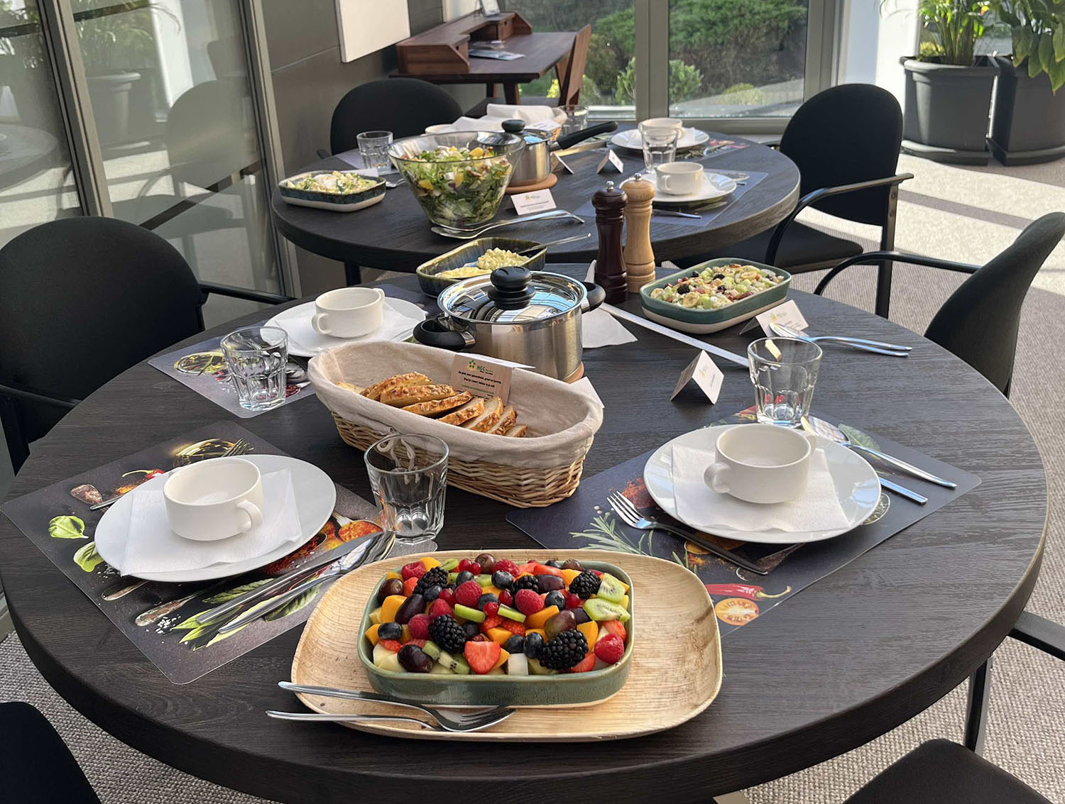 Er is een keuken aanwezig en we verzorgen graag een gezonde lunch of diner, koffie/(kruiden)thee/smaakwater. Wat (gezond) lekkers behoort ook tot de mogelijkheden. Hebben jullie stoelen nodig, tafels, een beamer, tv-scherm, flip-over, yogamatjes, meditatiekussens, allemaal bespreekbaar, wij bewegen graag mee. Vanaf de zomer (bij mooi weer) is het ook mogelijk om gebruik te maken van de inspiratietuinen achter de kas, ook om heerlijk buiten te lunchen aan de picknicktafels.