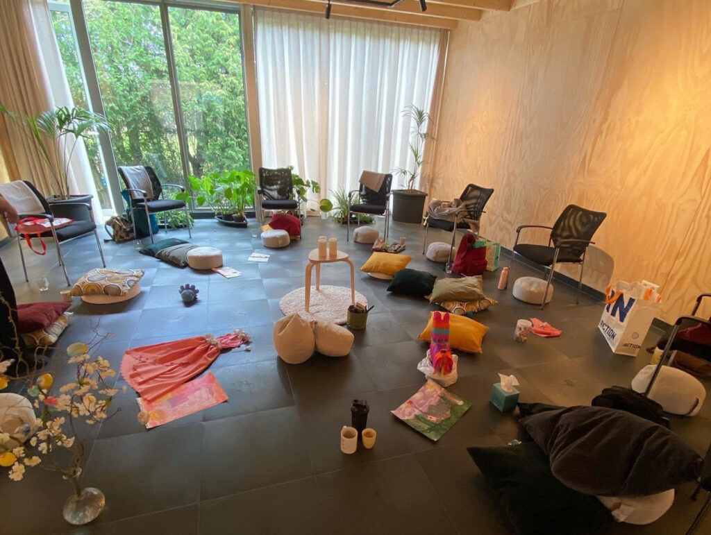 Parkeren kan grotendeels op ons eigen terrein (ca. 25 parkeerplekken). Willen jullie ruim de benen strekken? De Kleine Maarsseveense Plas met een heerlijk rondje van zo’n 2 km ligt om de hoek en kan ook vanaf eigen terrein bereikt worden. Kom ontspannen, creatief en energiek vergaderen bij ons in de “Positieve Gezondheid Kwekerij”.